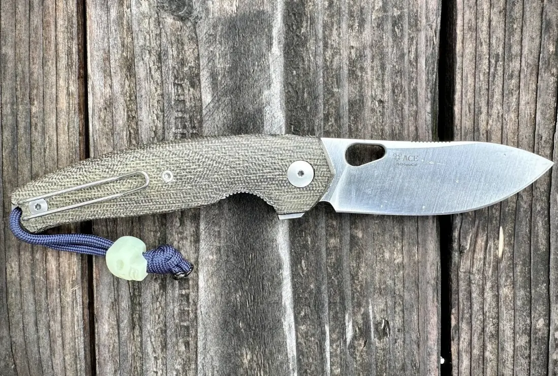 | GiantMouse ACE Jagt | $215 | 8” | 3.27” | CPM MagnaCut | Modified drop point | N/A | 4 oz. |