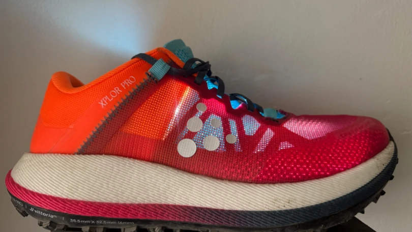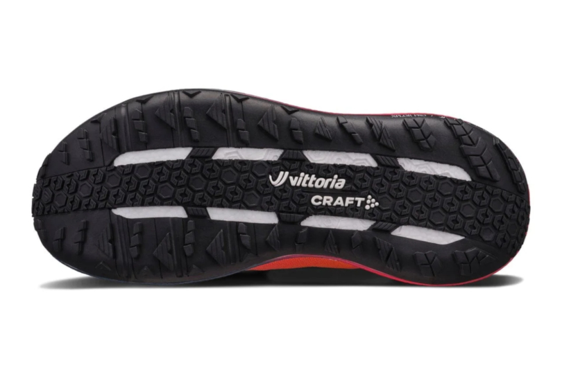 The Craft Xplor Pro’s tread is the closest I’ve felt to all-wheel drive in a running shoe. All-surface traction is what stands out the most. On trails, the lugs are the perfect height for hitting the ground and stabilizing the width of the shoe before the treaded center engages and grips varied surfaces for push-off.