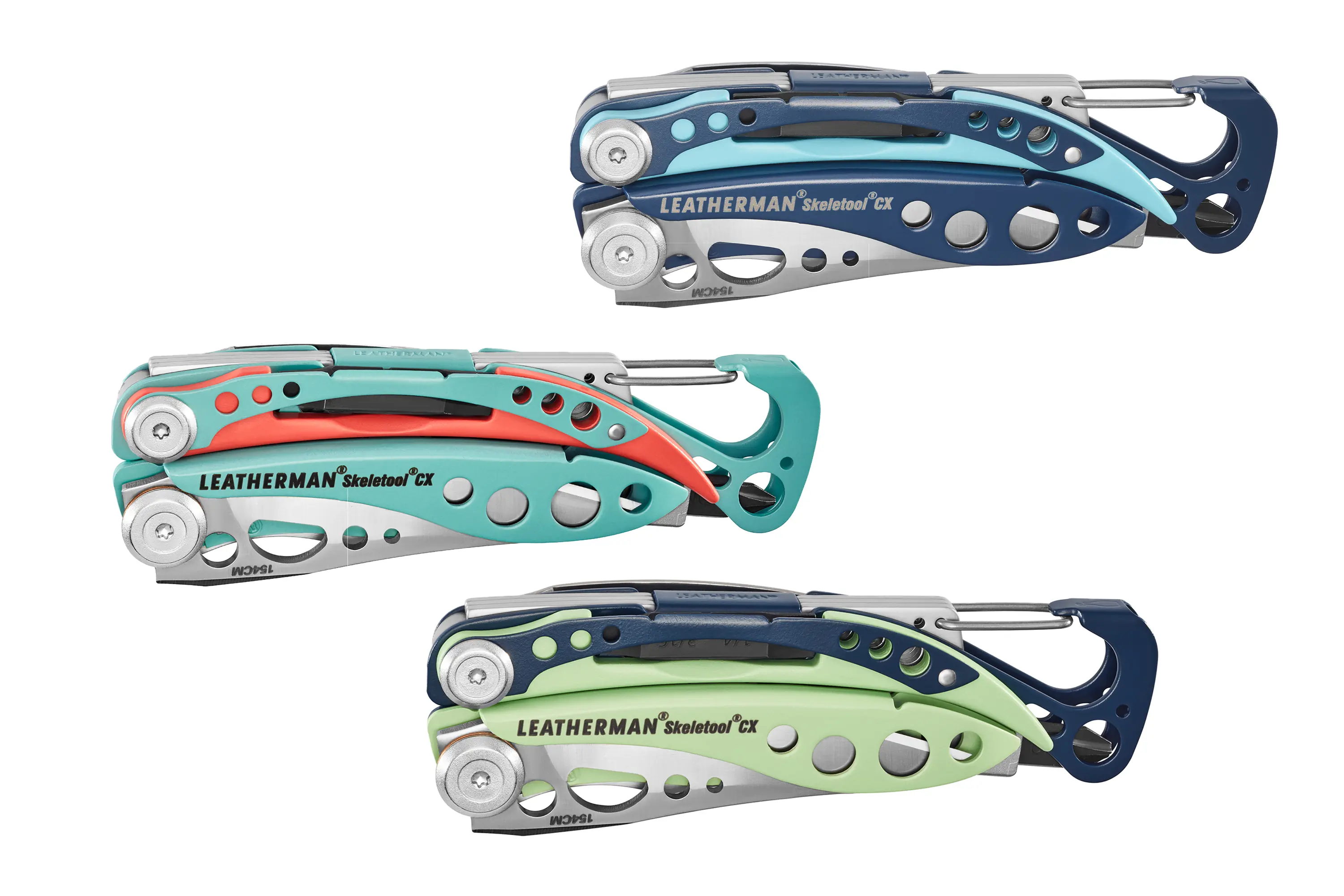 Aside from color, the Skeletool CX remains the same: It has a 154CM steel locking blade, a carabiner and bottle opener, two wire cutters, two pliers, a bit driver, and a pocket clip.